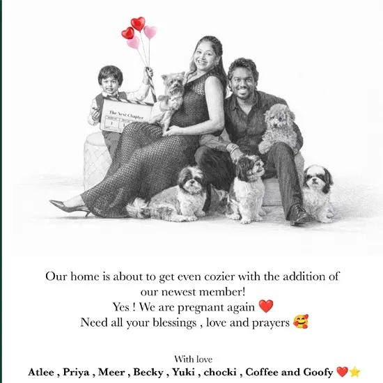 இந்த நிலையில் பிரியா தங்களது குடும்பத்தில் புதிய உறுப்பினர் இணையவிருப்பதை மகிழ்ச்சியுடன் அறிவித்துள்ளார். அதாவது தான் இரண்டாவது முறையாக கர்பமாக இருப்பதை தெரிவித்துள்ளார். இச்செய்தி சமூக வலைதளங்களில் வைரலாகி வருவதுடன், திரையுலக பிரபலங்களும் ரசிகர்களும் தங்களது வாழ்த்துகளைக் குவித்து வருகின்றனர்.