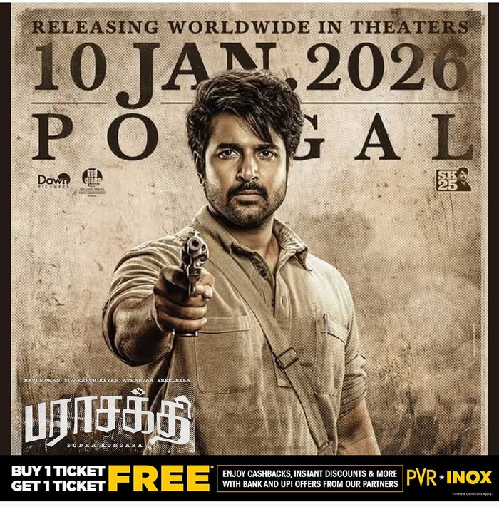 இந்நிலையில், பராசக்தி ஒரு டிக்கெட் வாங்கினால் ஒரு டிக்கெட் இலவசம் என பிரபல மல்டிப்பிளக்ஸ் தியேட்டரான PVR அறிவித்திருக்கிறது.